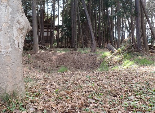 山門と都営住宅の間付近には、はっきりと認識できる土塁が残っています。